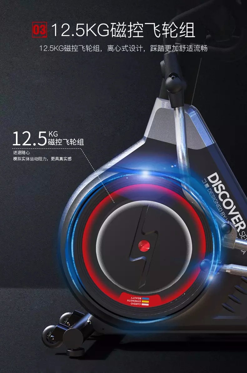 四、前置飞轮组,12.5kg双向磁控飞轮组使您运动更舒适。