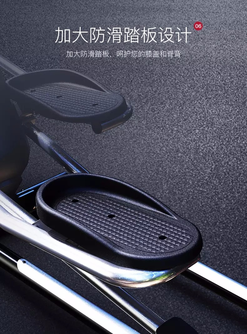 五、加大防滑脚踏板,提供更广阔的运动空间,舒适运动。