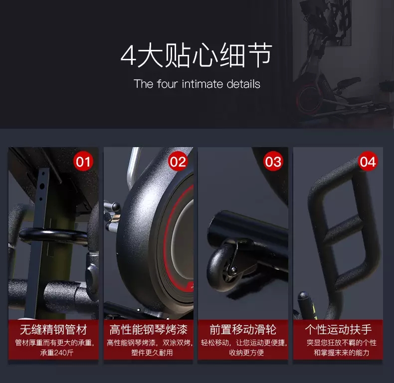 该健身器材采用人体工程学设计,轻松舒适,静音顺畅