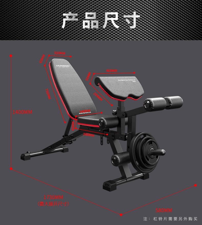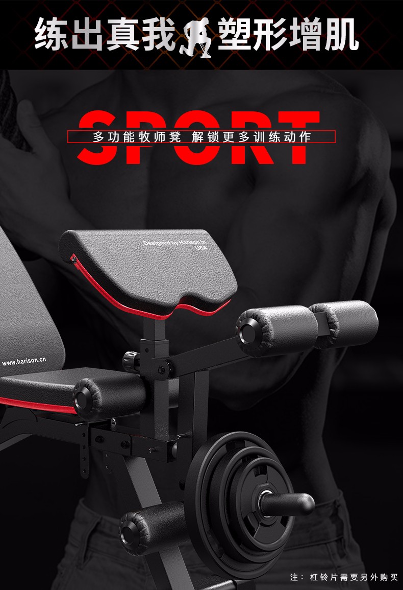2、高度可调的牧师凳,通过调节插销,拉伸牧师凳调节凳高度,也可拆卸,适应不同人群训练需求。