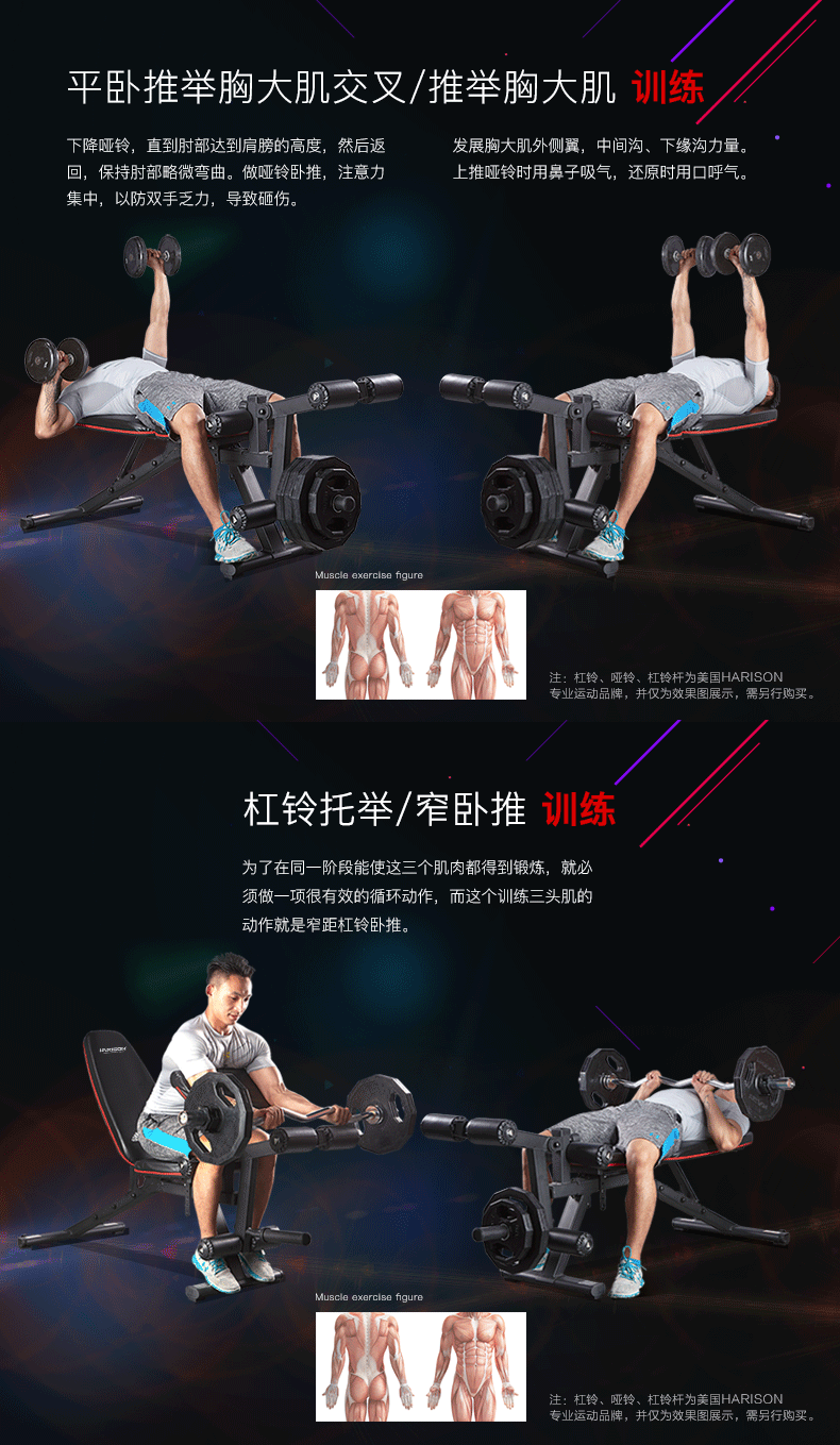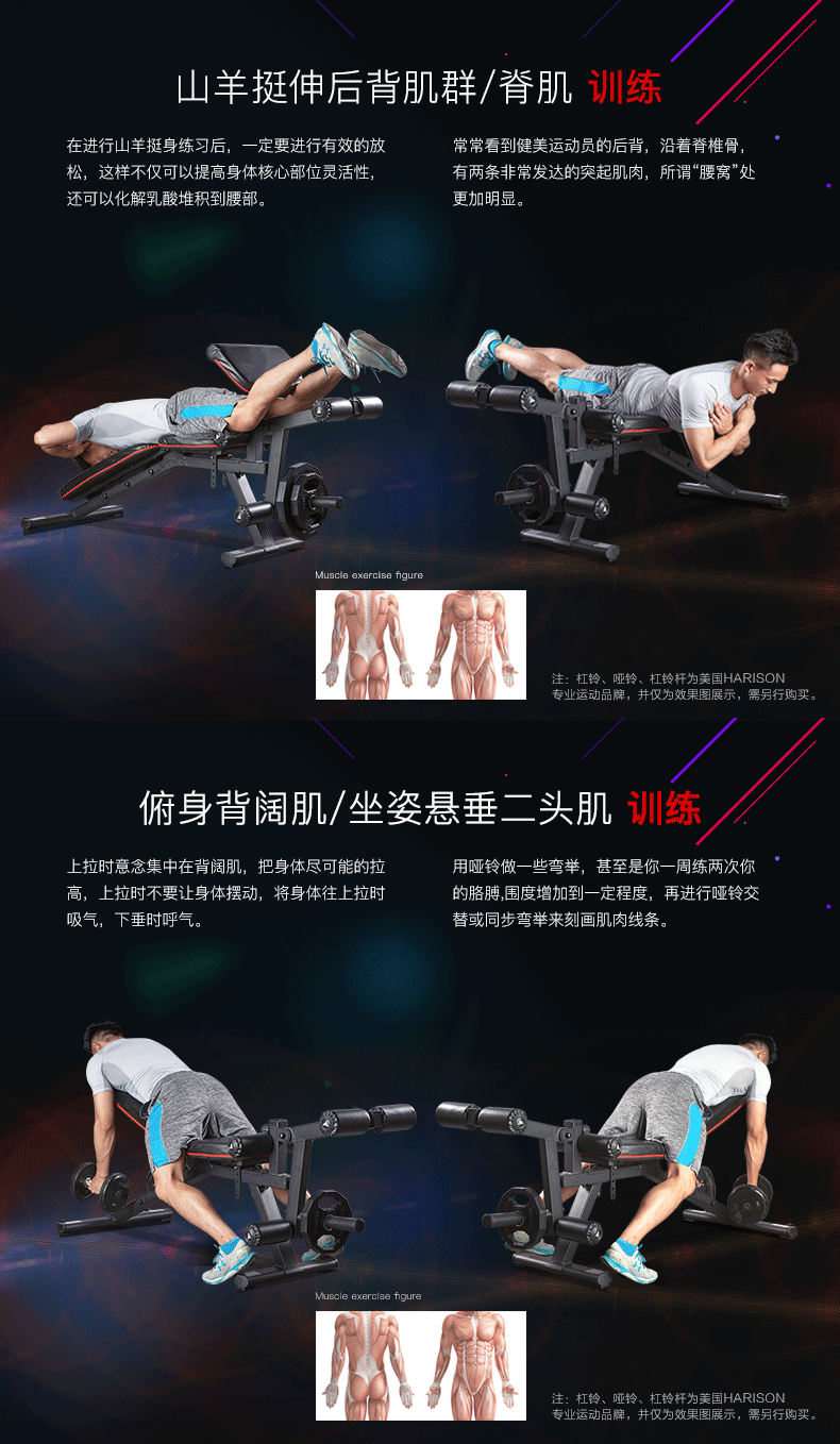 功能:胸肌、肩部、臀部、腹部、背部肌肉群体训练